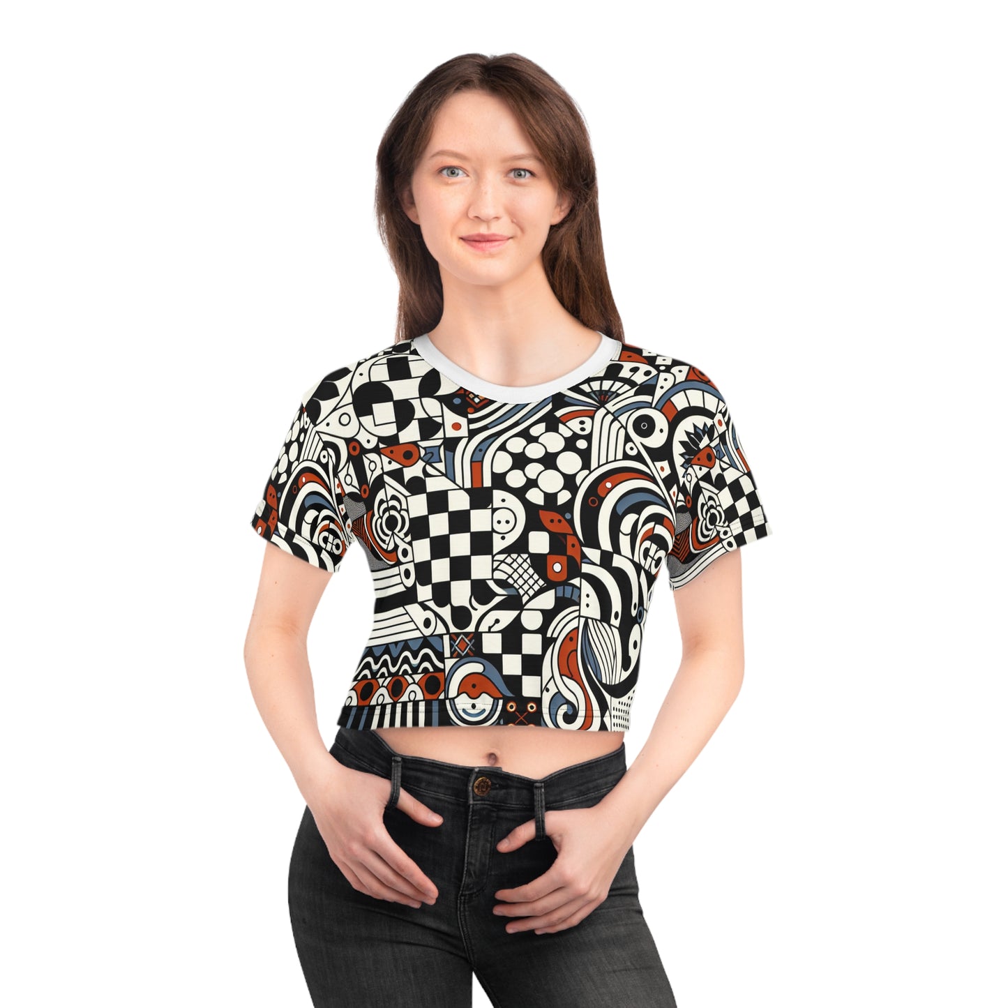 Andrea Bellecci Colourful Checkerboard Crop Top - 100% Silky Soft Polyester - Modern Street Style