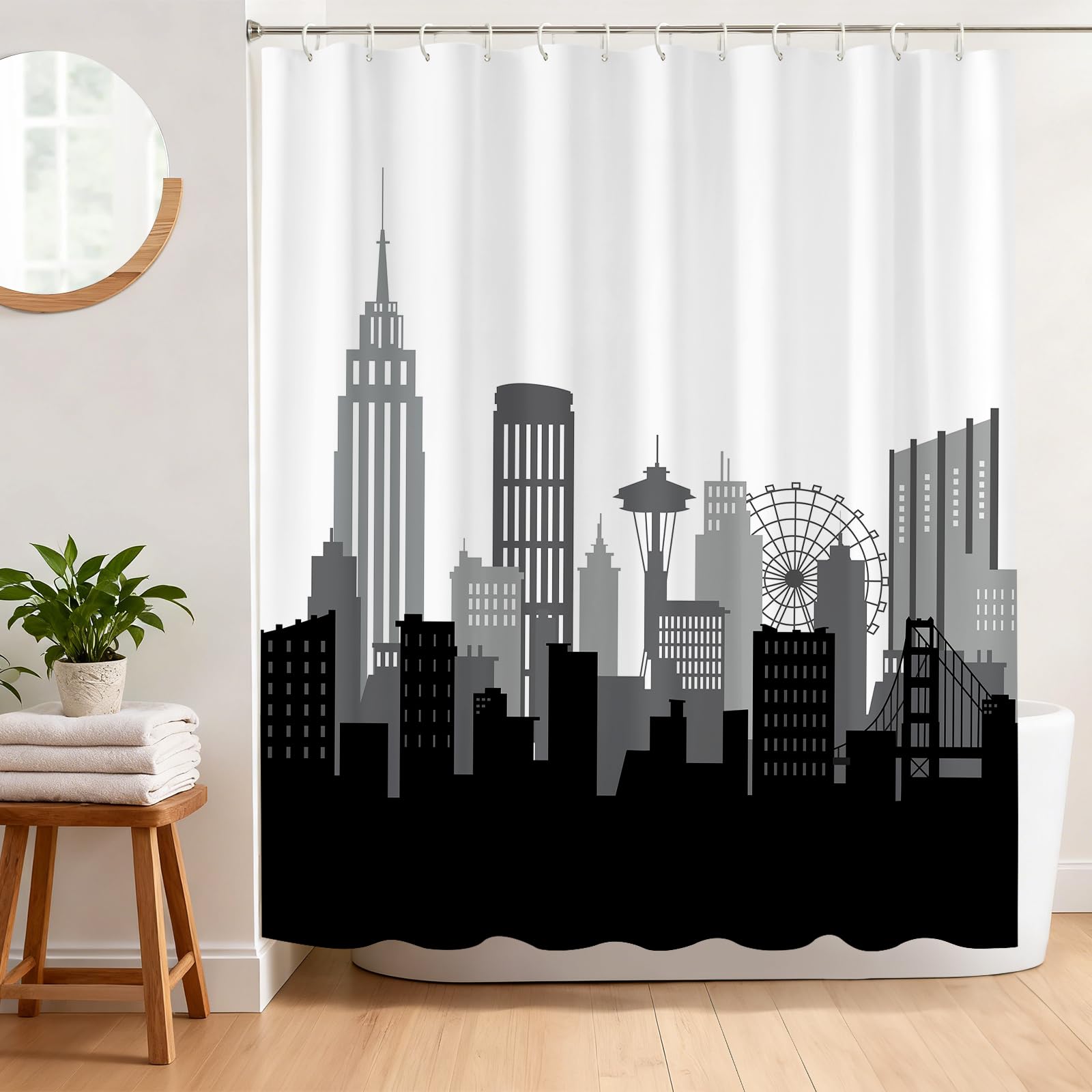 BREASOME Architecture Shower Curtain 180 x 180 cm Black and White Shower Curtain for Bathroom Decor Mould Proof Waterproof Polyester Fabric Bath