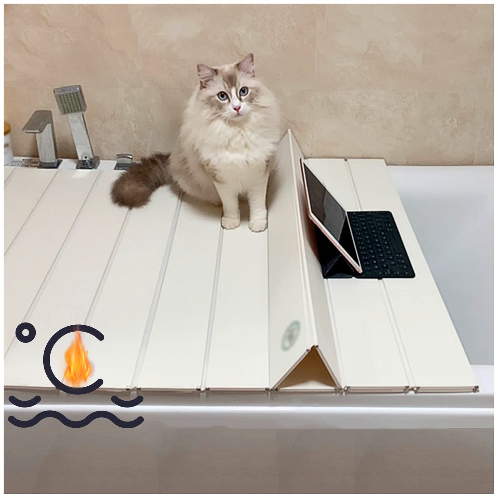 - Bathtub Shelf: It has a load capacity of up to 6 kg and can be used as a shelf or for the space-saving organization of sanitary items. The bathtub cover can be folded into a triangle or something similar and you can enjoy the practical tray function by placing it over the bathtub. The bath board can be filled with pills, books, coffee, wine, shower gel, shampoo.