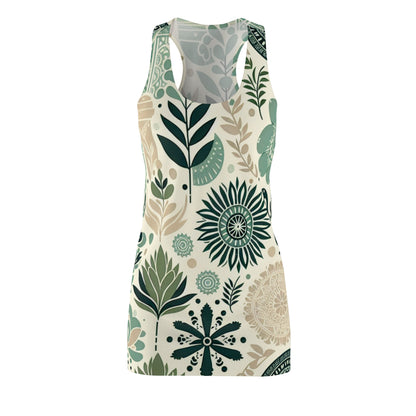 Introducing the Leilani Beaumont Pastel Green Racerback Dress, a stunning piece that combines contemporary style with timeless elegance. This dress features a unique block print adorned with organic shapes that evoke a sense of nature’s beauty, all set against a soothing pastel green backdrop. Perfect for the modern woman who desires both comfort and sophistication, this racerback dress effortlessly transitions from day to evening, making it an essential addition to your wardrobe.
