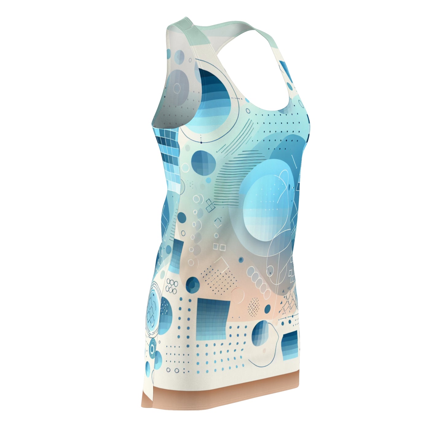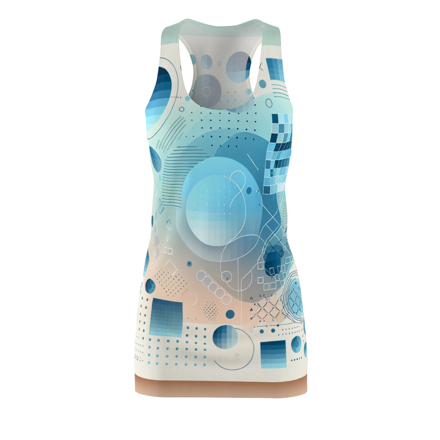 The abstract design boasts non-geometric shapes, adding an unexpected twist that sets you apart from the crowd. This dress is not just a piece of clothing; it is a canvas of creativity and innovation that empowers you to express your unique style. Ideal for brunches, garden parties, or elegant evening outings, this racerback dress exudes confidence and sophistication.