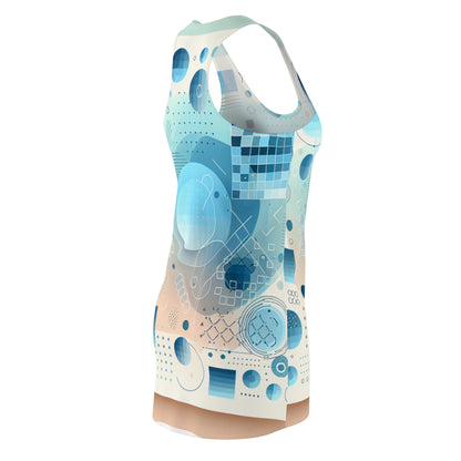 Sebastian Couture Abstract Racerback Dress in Pastel Blues - Chic Feminine Fashion Statement