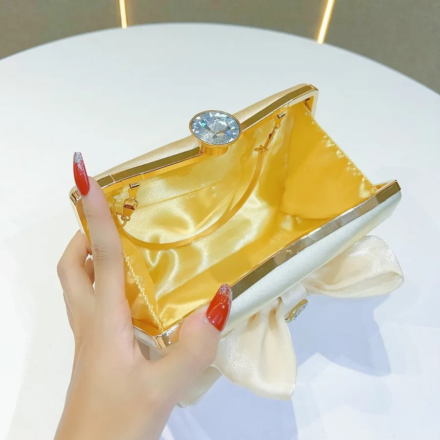Retro Butterfly Knot Fairy Elegant Dinner Handbag Single Shoulder Crossbody Women's Bag Evening Clutch Polyester Square Bag
