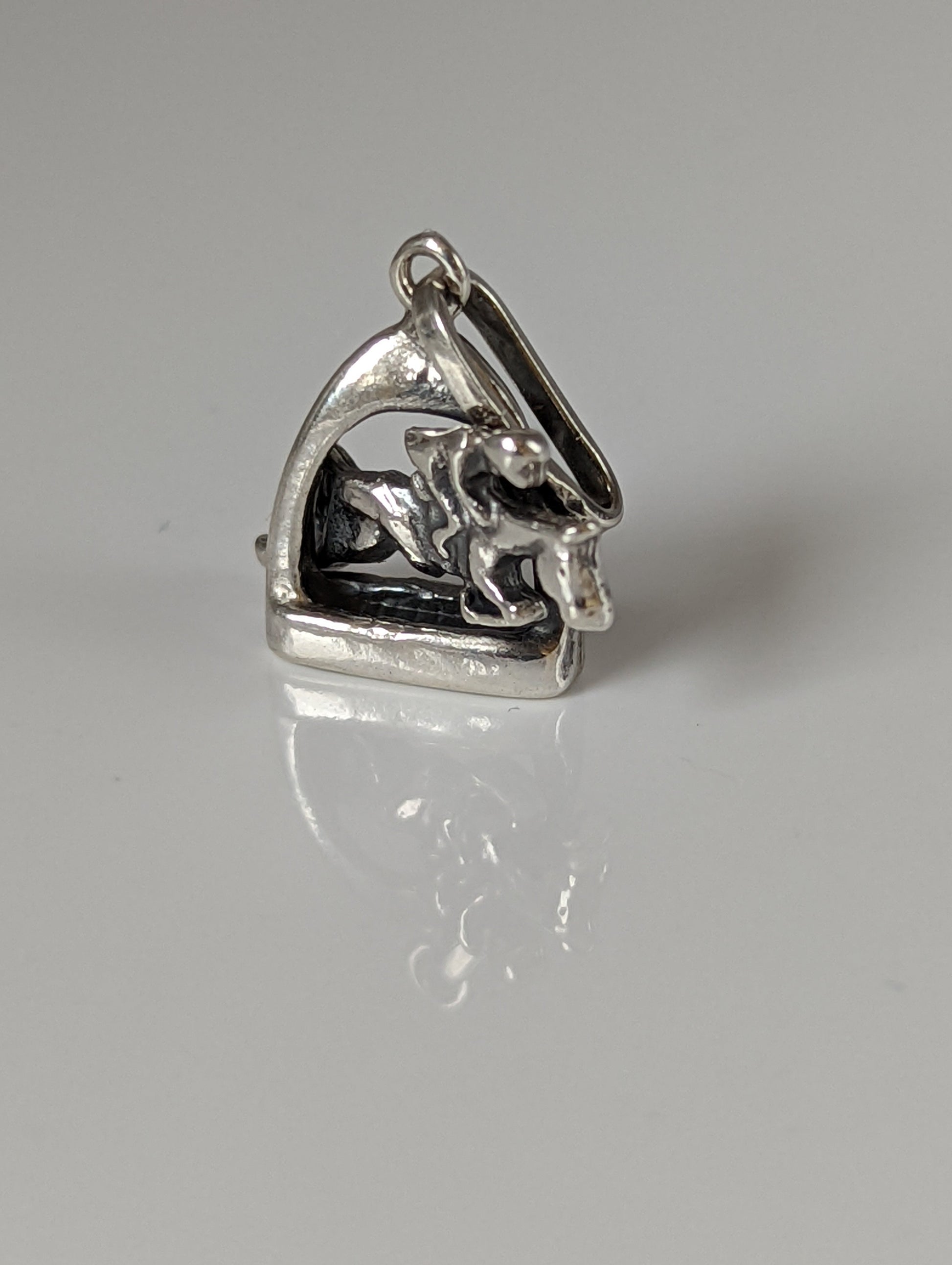 Silver Steed Jump Over a Stirrup, Stirrup & Jockey Silver Pendant