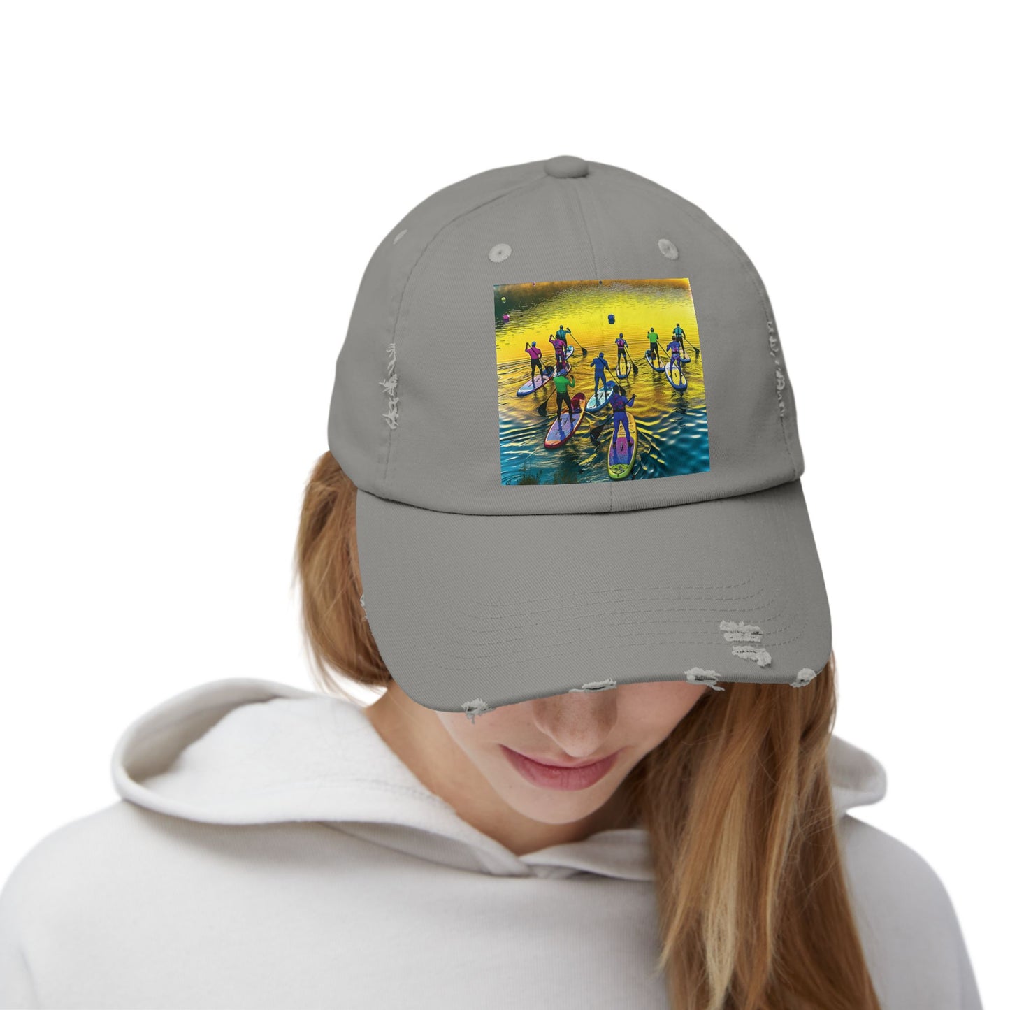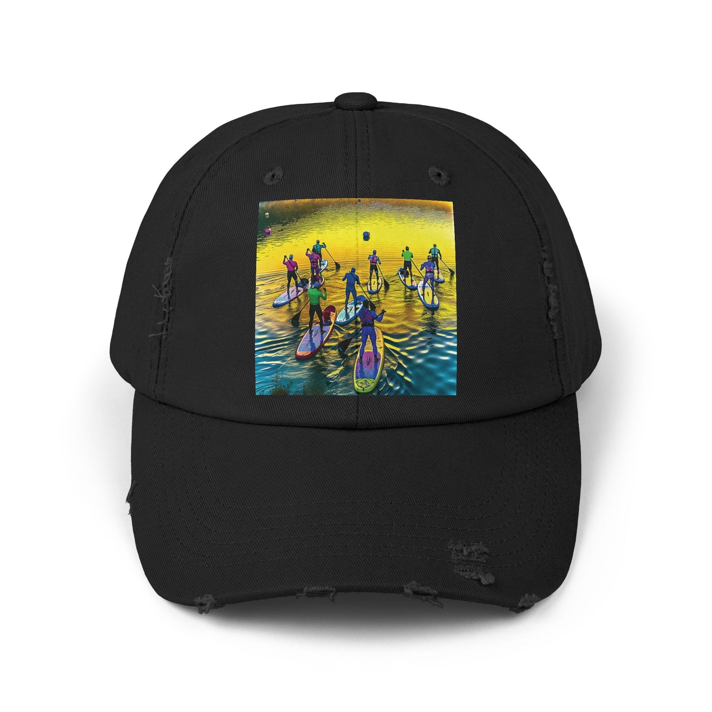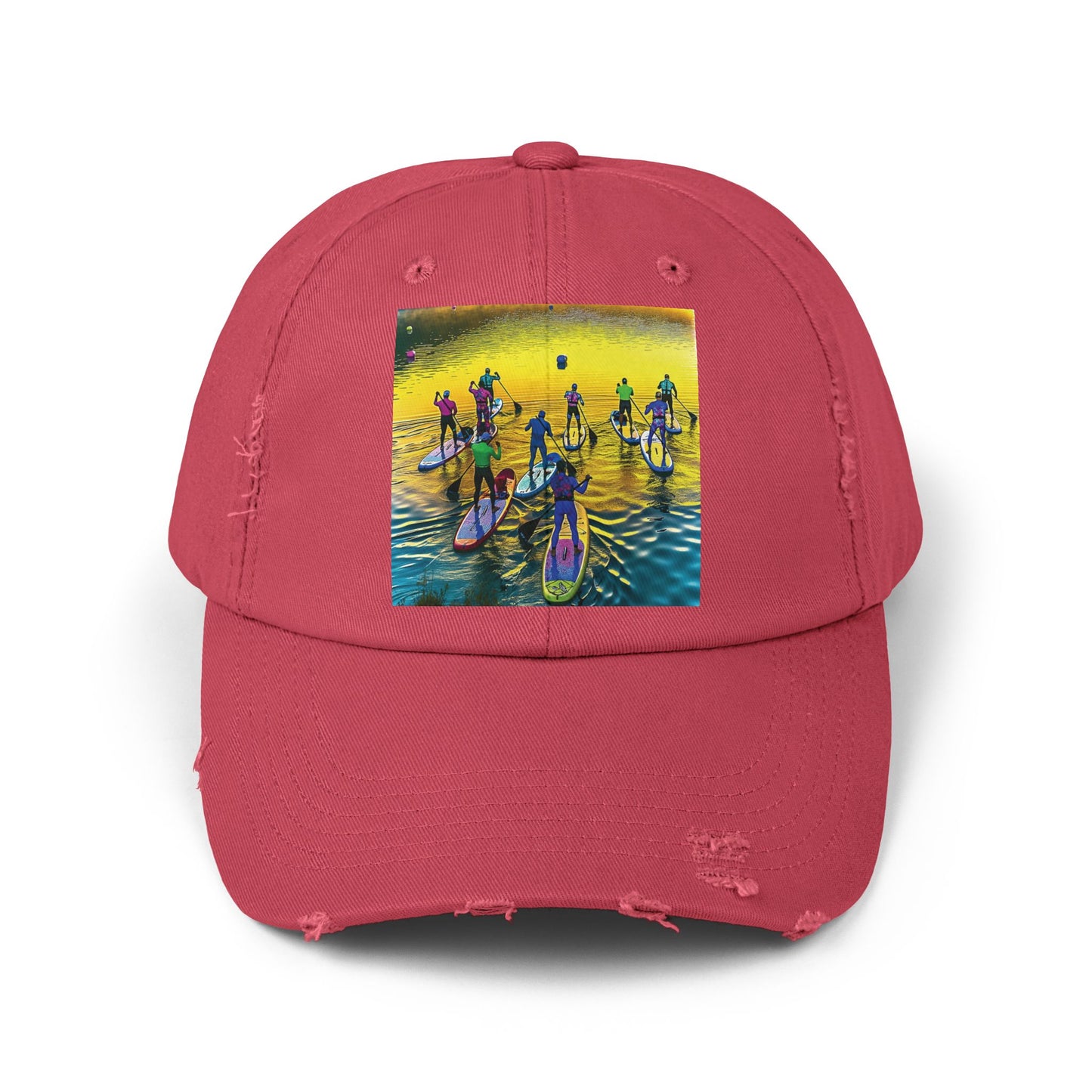 Elevate your outdoor adventures with our exquisite Unisex Distressed Paddleboarders Cap, designed for those who embrace both style and thrill! This unique cap features a stunning fantasy scene of paddleboarders, capturing the essence of adventure, relaxation, and fun. Whether you're basking on the beach or gliding down the river, this cap effortlessly complements your journey.