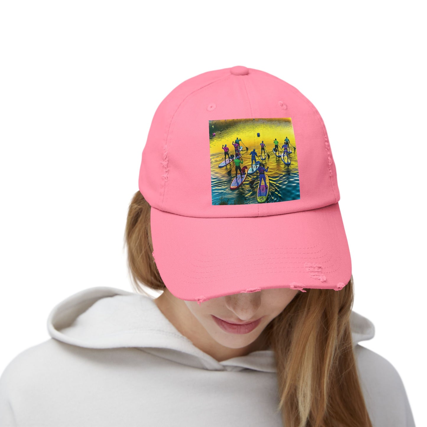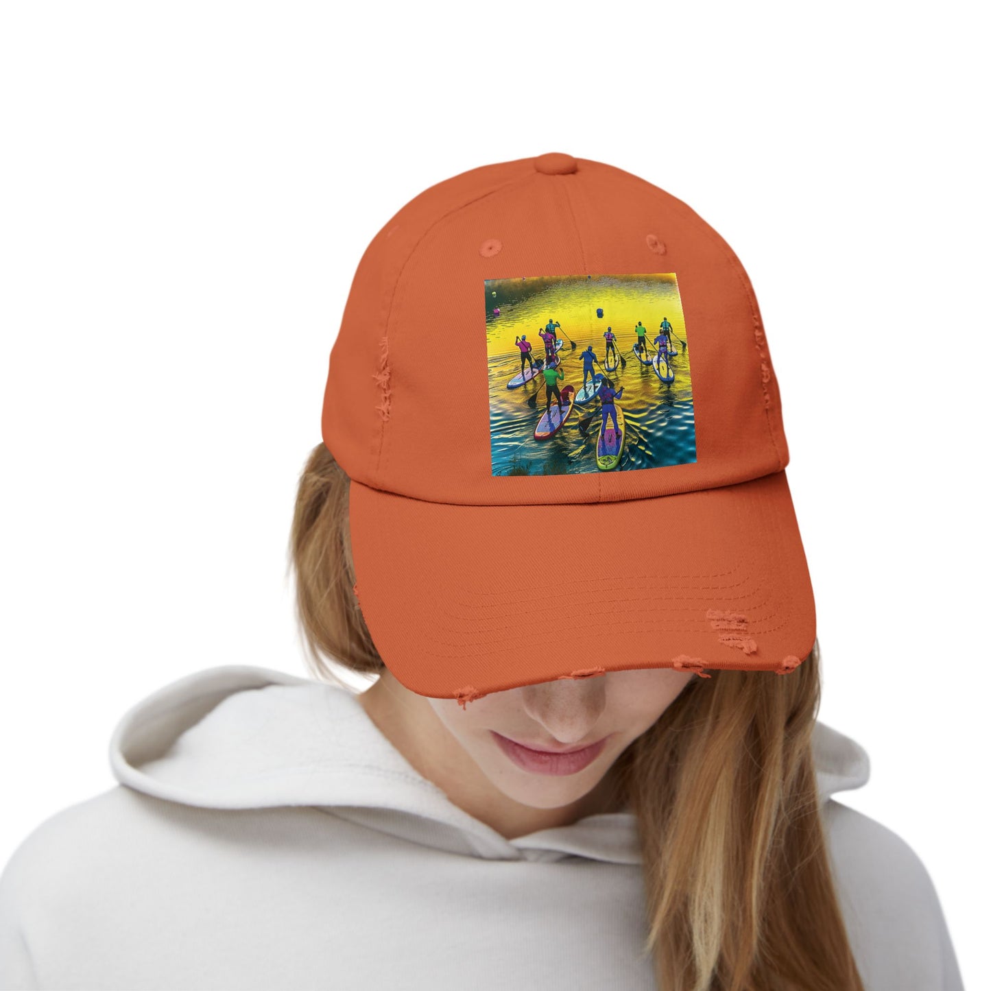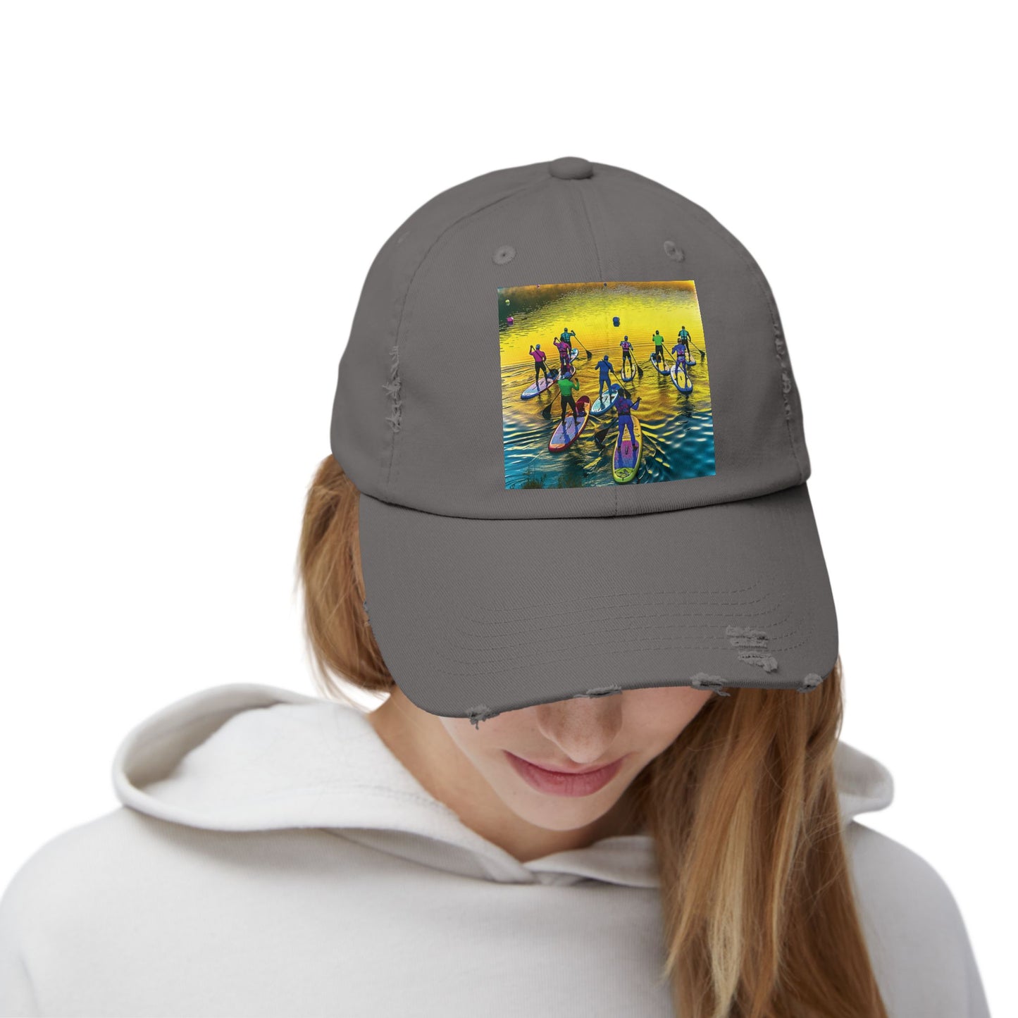 Elevate your outdoor adventures with our exquisite Unisex Distressed Paddleboarders Cap, designed for those who embrace both style and thrill! This unique cap features a stunning fantasy scene of paddleboarders, capturing the essence of adventure, relaxation, and fun. Whether you're basking on the beach or gliding down the river, this cap effortlessly complements your journey.