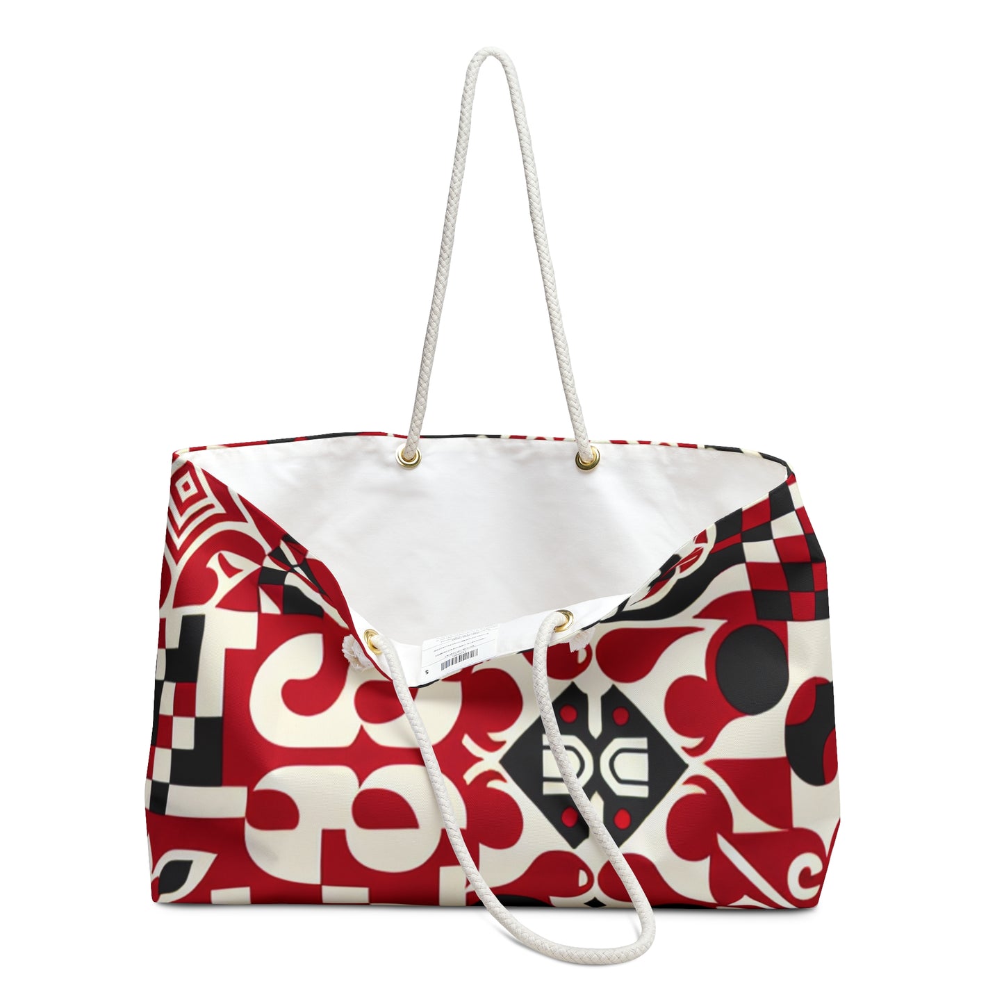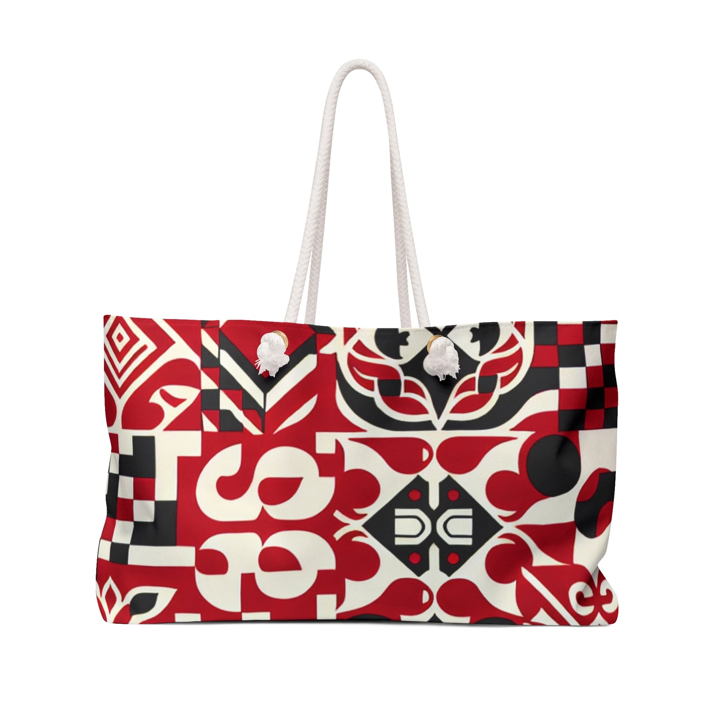 Valentina Rialto Red Weekender Bag - Checkerboard Design, Organic Shapes, Durable Canvas Tote